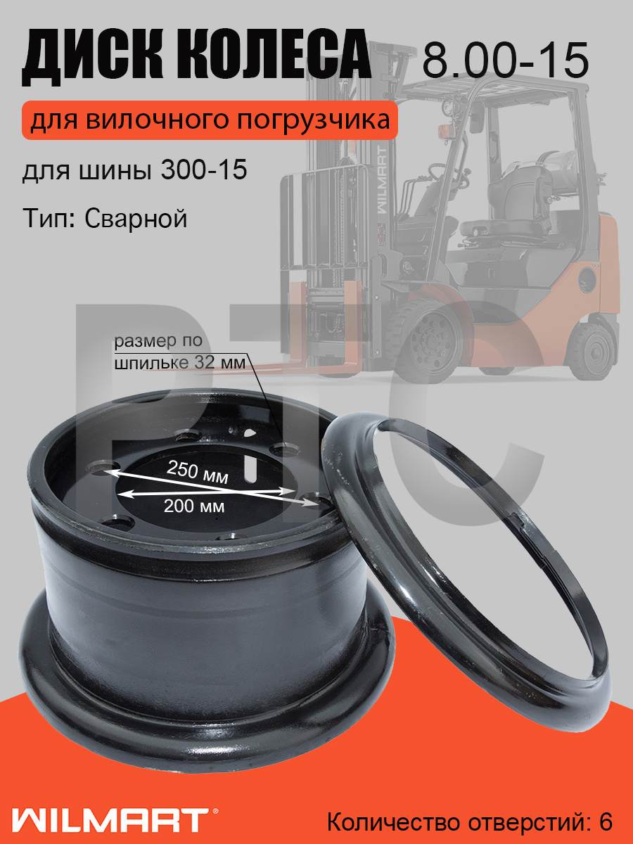 Бренды HANGCHA Марка спецтехники HANGCHA Размер 8.00-15, 6x250/ф200, отверстия d32 мм, вылет внутренний 200 мм, вылет внешний 79 мм, общая высота 280 мм, общий диаметр 468 мм. Вес, кг 27.45 -