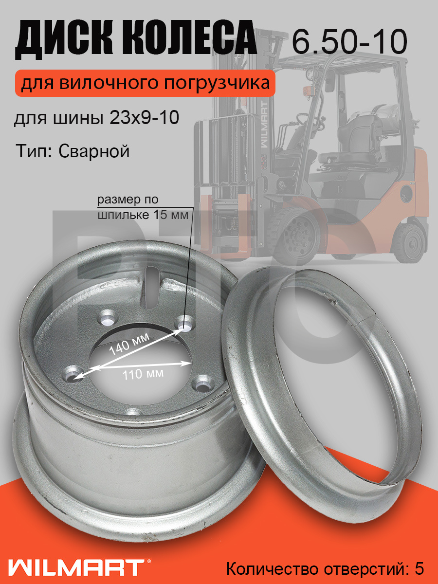 Бренды HANGCHA Марка спецтехники HANGCHA Размер 6,5-10, 5x140/ф110, отверстия d15 мм, вылет внутренний 110 мм, вылет внешний 95 мм, общая высота 205 мм, общий диаметр 298 мм. Грузоподъемность 10-18 Вес, кг 12.65 -