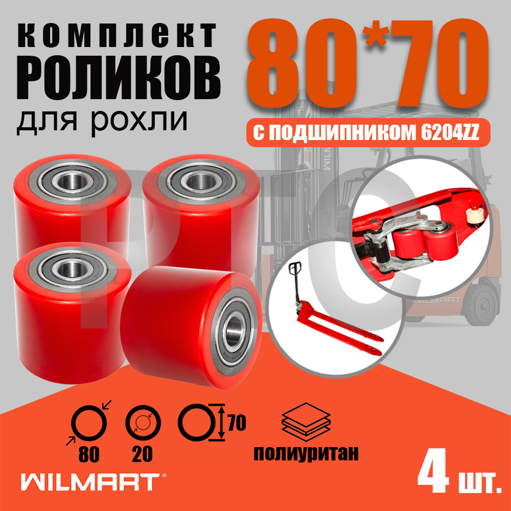 • Ролик вил Ф80х70 (полиуретан) с подшипником (комплект 4 штуки)